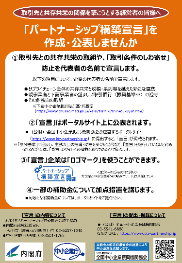 「パートナーシップ構築宣言」ポータルサイト情報コーナーよりご覧ください。