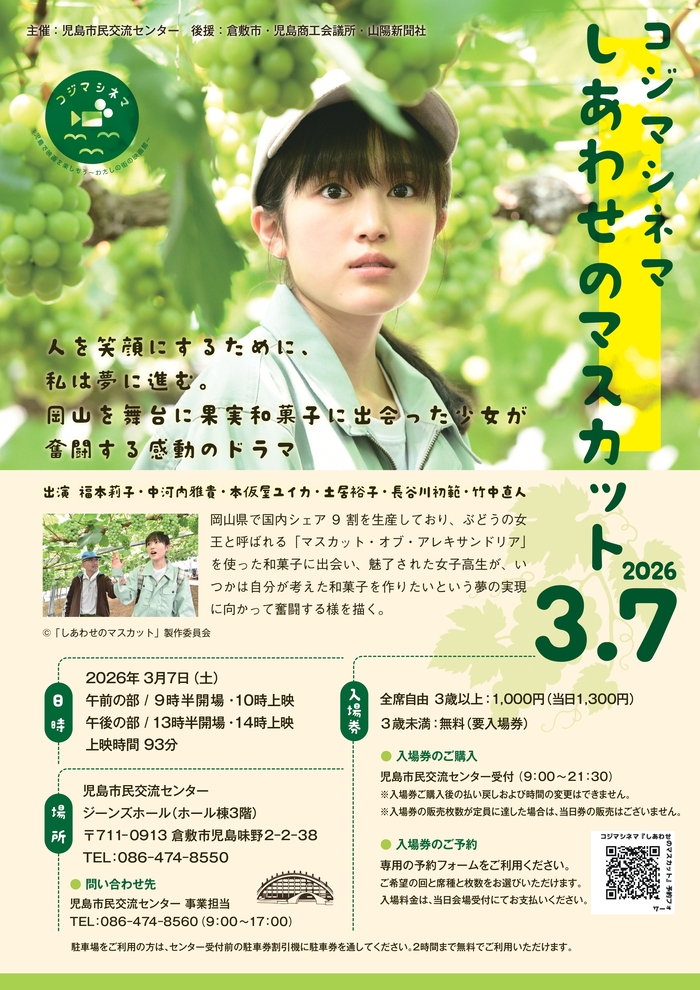 岡山を舞台に、果実和菓子に出会った少女が自分で和菓子をつくるという夢をかなえようと奮闘しながら成長していく物語を上映します。