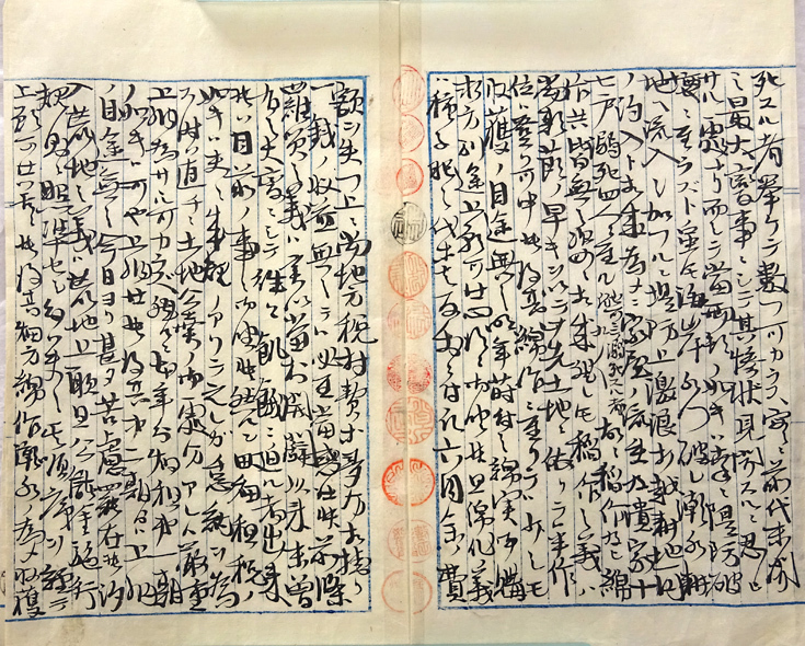 右の両村は東高梁川を隔てて窪屋・児島の両郡に接し、西北は山林を挟んで浅口郡片島村・西阿知村の両村に隣接している。村の南面は一帯の海岸になっていて水島灘という。そのようなところに先月8月25日午後7時より東南の風が発生し、11時に至って大風になり、翌26日午前2時南西の風に変化してその勢いは最も強くなり、そのため風にあおられた怒涛が天空を巻き暴風が地面をつらぬき、近郷の新開地(福田新田)では堤防がことごとく破れ、家屋の流失・人や家畜で溺死する者は数えることができないほどである。実に前代未聞の最大の変事であってその惨状は見聞するのもつらいところである。そんな中、連島・亀島新田村の両村のような場所では、幸いにも堤防破壊の被害に遭わずに済んだものの、海岸の水門が壊れ、潮水が耕地ヘ流れ込み、これに加え堤防上を激しい波が乗り越えて耕地全体が潮水に浸される状態になり、そのため17戸の家屋が流失または倒壊し、4人が溺死した(他所で溺死した住民もおよそ9人いた)。そのため稲作および綿作とも壊滅状況になってしまった。しかしながら稲作については、なお植え付け時期が早かったため今後土地によっては半分くらい収穫できる可能性があるけれども、綿作に関しては少しも収穫の目途がなく、明年蒔き付ける綿実(綿の種子)の購入について別途請願するつもりである。また綿作については一反歩につき種子肥料代などにして約6円余りの金額を失ったうえ、さらに地方税や村費などがたくさん掛かるので、一銭の収益もない状況では必ず当惑してしまう。前記したような罹災は本当に当村がはじまって以来の未曽有の大変事で、ゆくゆく飢餓に苦しむ者が現れるのは目前のことと思われる。そのうえ、田畑にかかる租税にはそれぞれ規則があり滞納した場合はただちに滞納者の土地が公売処分されてしまうので、厳重に上納せざるを得ない。こうした状況下、本年分の畑にかかる租税のうち第1期納付分はかなり上納できたけれども、第2期納付分以降は上納の目途がなく、現在大変苦慮している。潮水が入って荒地になった場所については荒地上願(荒地に対する租税免除の請願)と公儲金(自治体など公が積み立てた貯金)施行規則に照らして(租税免除や公儲金給付の)対象になる分はそれぞれ順序をふんで請願するつもりだが、畑地の綿作が潮水のせいで収穫ゼロになった分に関しては別途救助の手立てを講じてもらわないと、地持(地主)の生計が立ち行かない。これに加え、連島・亀島新田両村は綿作をもって第一の物産としており、村民もまた綿に頼って生計を営む者が6~7割に達している。そうであるのに些少の収穫もない中では別途に課役をつとめる目途も立たない。実に難渋至極の状況なので、何とぞ至急に実地を御検査のうえ、特別の御恩情をもって救助していただけるよう配慮していただきたく思い、ただちに被害地の面積その他を計算した概略書を添えて、私ども地持(地主)惣代として歎願させていただくので、御憐察のうえ依願の趣意をお聞き届けくださるよう請願させていただくところである。(年月日・署名・宛先省略)