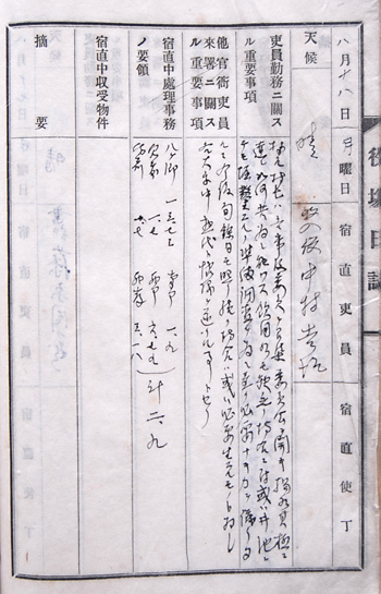 八月十八日 月曜日 天候 晴 宿直吏員 収入役 中村吉治
