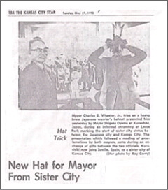 1972年3月、米国ミズーリ州カンザスシティ市が、同年5月に「日本」をテーマとした世界貿易週間を開催するにあたり、倉敷市との提携を熱望しているとの連絡がありました。倉敷市は、国際親善都市連盟、日本貿易振興会の協力・推薦を得て、同年4月17日市議会全員協議会を開き、同意賛成を得、代表として倉敷市長、市議会議長、倉敷商工会議所会頭を現地に派遣する事を決定しました。