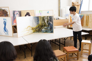 屏風を制作しているのは、総合プロジェクト授業に参加している12人と日本画ゼミ生の5人です。