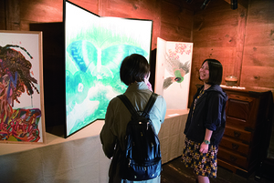 多くの観光客や地域の人が屏風を見に訪れ、学生らは自分たちの作品の説明をして交流しました。