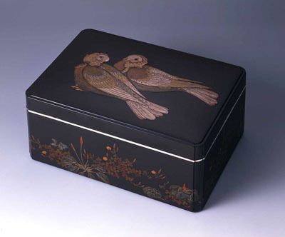 本作は、自ら創出した描蒟醤の技法を駆使した仁斎の代表作のひとつで、透明な漆を根気よく丹念に塗り重ねたり、研いだりすることにより、立体的で格調の高い作品となっています。