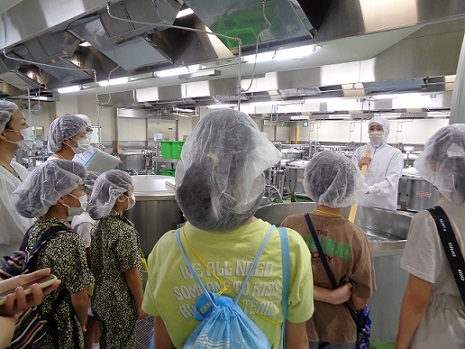 今年度は抽選での申込みとし、1000名を超える応募がありました。当日は、その中で当選した約360名が参加し、普段入ることのできない調理場内を栄養教諭の案内で見学しました。