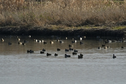 - 水面;カルガモ、オオバン、ヒドリガモ、マガモ