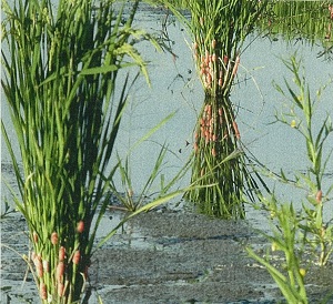 ここ福田地区はジャンボタニシの多い所ですが、10年程前には我が家の近くでは見なかったのに近頃ではもう、赤い卵がいっぱいです。